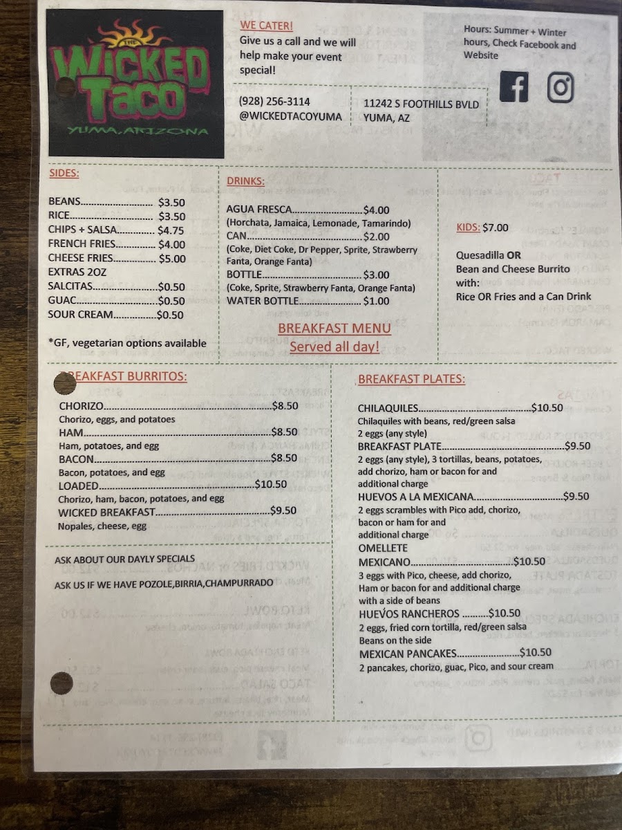 Welcome to The Wicked Taco, a vibrant taco haven located in Yuma, Arizona. This charming establishment offers a mouthwatering menu that celebrates authentic Mexican cuisine, delivering bold, rich flavors that leave customers raving. From the moment you step inside, the friendly atmosphere enhances your dining experience.